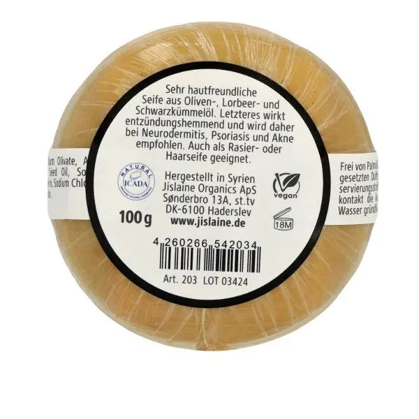 Natriumolivat (forsæbet olivenolie), Aqua (vand), Glycerin, Nigella Sativa frøolie (sort spidskommenolie), natriumlaurelat (forsæbet laurbærolie), natriumchlorid (bordsalt), natriumhydroxid